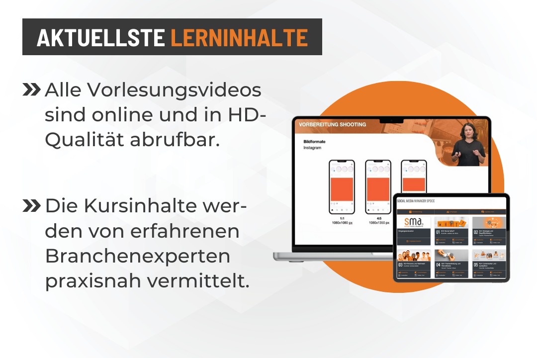 In der heutigen digitalen Welt sind Inhalte der Schlüssel, um Zielgruppen zu begeistern und Marken erfolgreich zu positionieren. Als Digital Content Creator entwickelst du Inhalte, die in Form von Social-Media-Beiträgen, Blog-Artikeln oder Videos potenzielle Kund*innen erreichen und überzeugen. Die Weiterbildung Digital Content Creator an der Social Media Akademie vermittelt dir praxisnahes Wissen rund um die Erstellung und Vermarktung von digitalem Content. Du lernst, verschiedene Arten von Inhalten – von Texten über Videos bis hin zu Podcasts – zu erstellen und zielgruppengerichtet auf Plattformen wie Social Media, Websites oder im E-Mail-Marketing zu platzieren. Besonderer Wert wird auf die Optimierung deiner Inhalte gelegt: Du analysierst die Performance und entwickelst datenbasierte Strategien, um deinen Content kontinuierlich zu verbessern. Mit dem anerkannten Abschlusszertifikat „Digital Content Creator“ beweist du dein Fachwissen und bist bestens auf den Arbeitsmarkt vorbereitet.